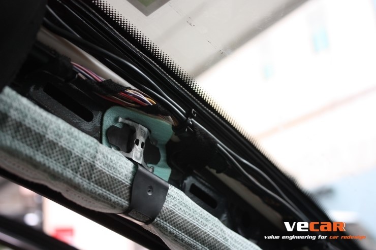 에어백과의 간섭이 없도록 순정 배선라인을 따라서 정리해주면 완료됩니다.